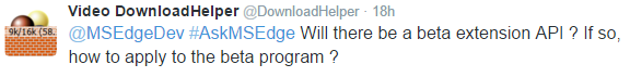 Wednesday was the busiest Twitter Chat we’ve done so far and we tried to answer as many questions as we could during the two hour session but it’s true that we couldn’t keep up and we didn’t answer everything immediately. We answered nearly 300 questions during that time and we’ve spent a few more hours since then scanning through the questions and trying to answer all that we missed. You can see these in the @MSEdgeDev feed.