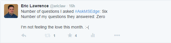 The Microsoft Edge (nee Internet Explorer) team held one of their “#AskMSEdge chats” on Twitter yesterday.