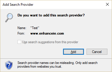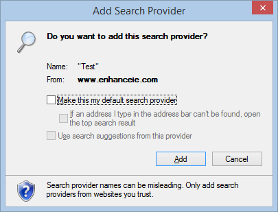 Let’s have a look at the new version of that Add Search Provider dialog box we saw earlier. See what’s missing?