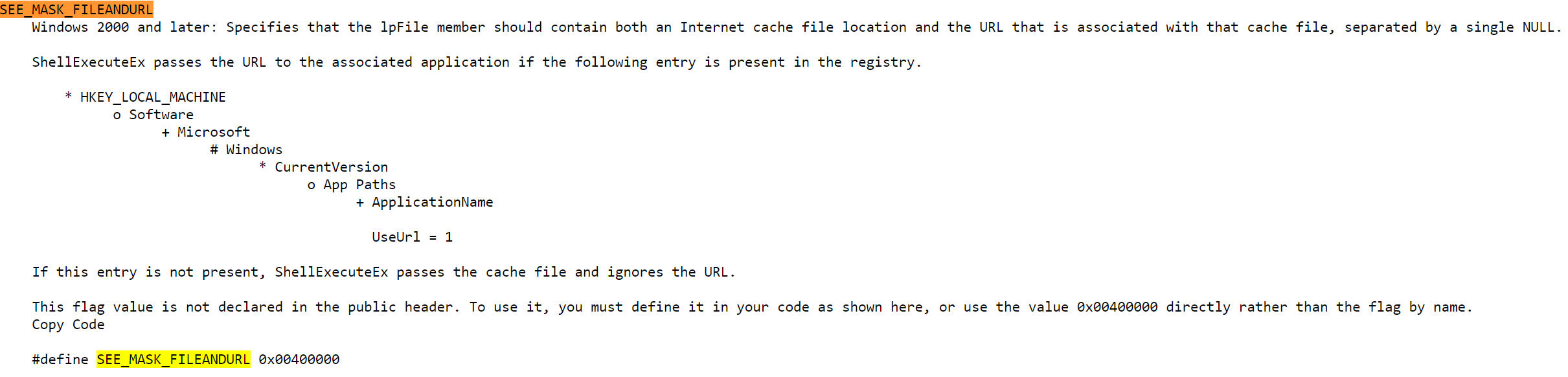 [1] Archaeology fun fact: fossils of the Win2K era mechanism are hard to find. SEE_MASK_FILEANDURL was once used by clients including InfoPath.