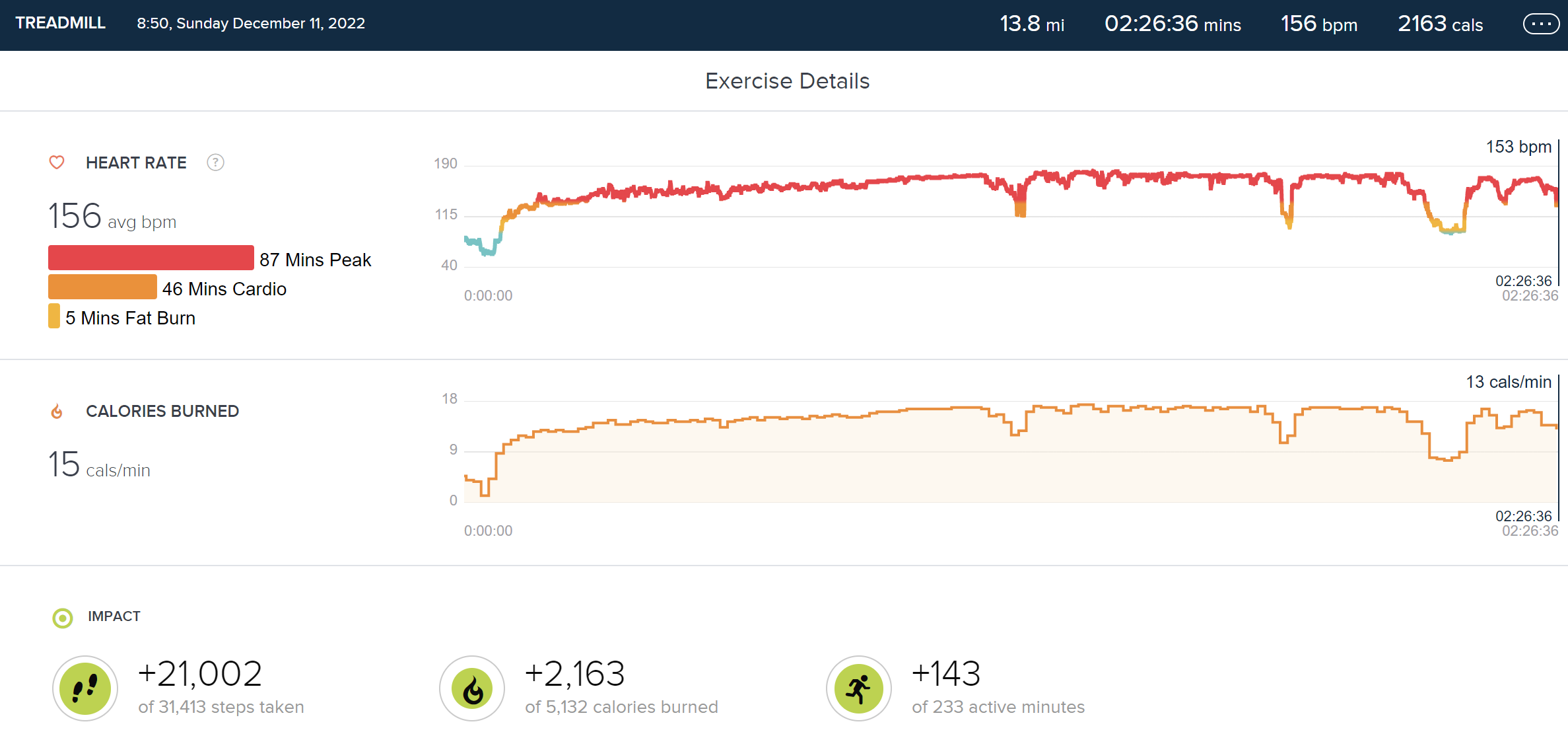 I refilled my water bottle and then jogged another 1.2 miles to “finish” the race with the trainer (I run faster than the target pace) before calling it a day. I cooled off by walking a mile outside and crossed 30,000 steps for the day for the first time.