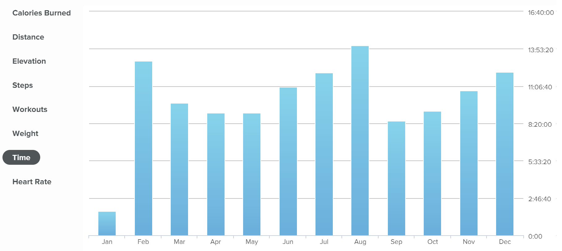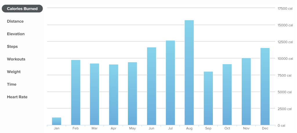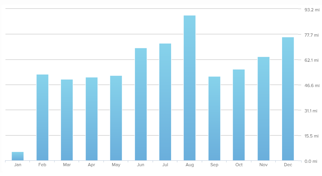 Perhaps surprisingly (given the summer heat), I got the most miles in over the summer months: