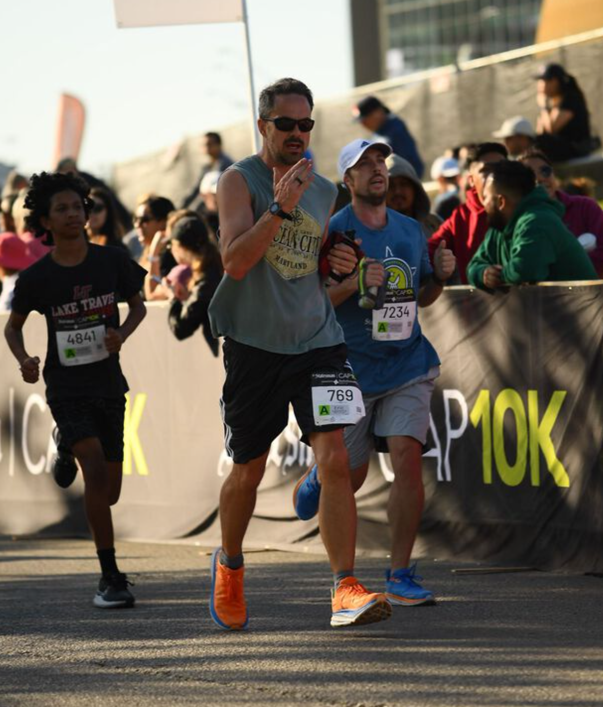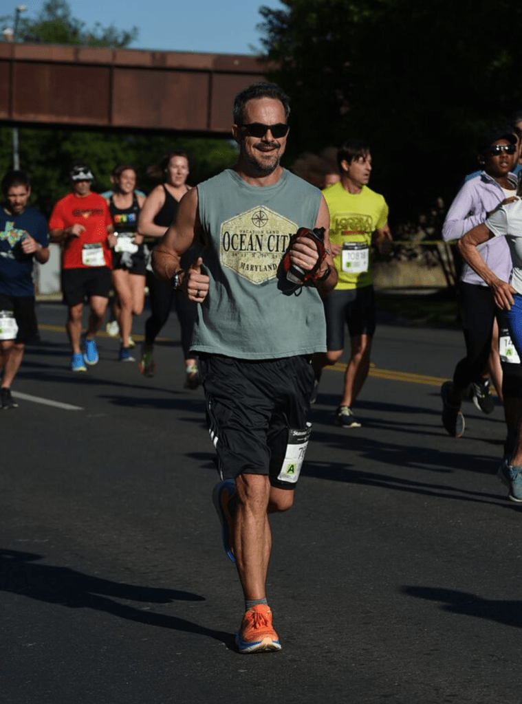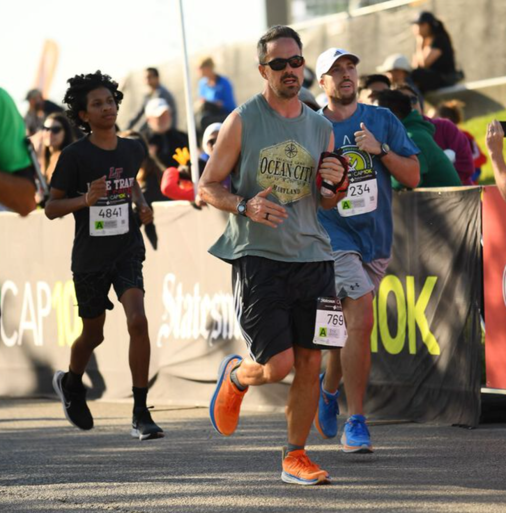 I started running harder as I crossed the bridge near the finish line and poured on even more speed as I turned the last corner with a tenth of a mile left to go. I heard my older son shout out “Go, Dad, Go!” and started looking for him. I then heard my younger son chime in, hollering “Go, Dad!” and I was so happy — he’s usually quiet and it was so motivational to hear that he was so into it.