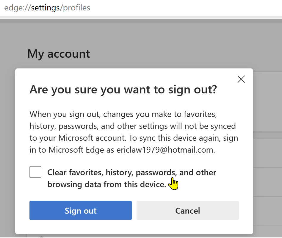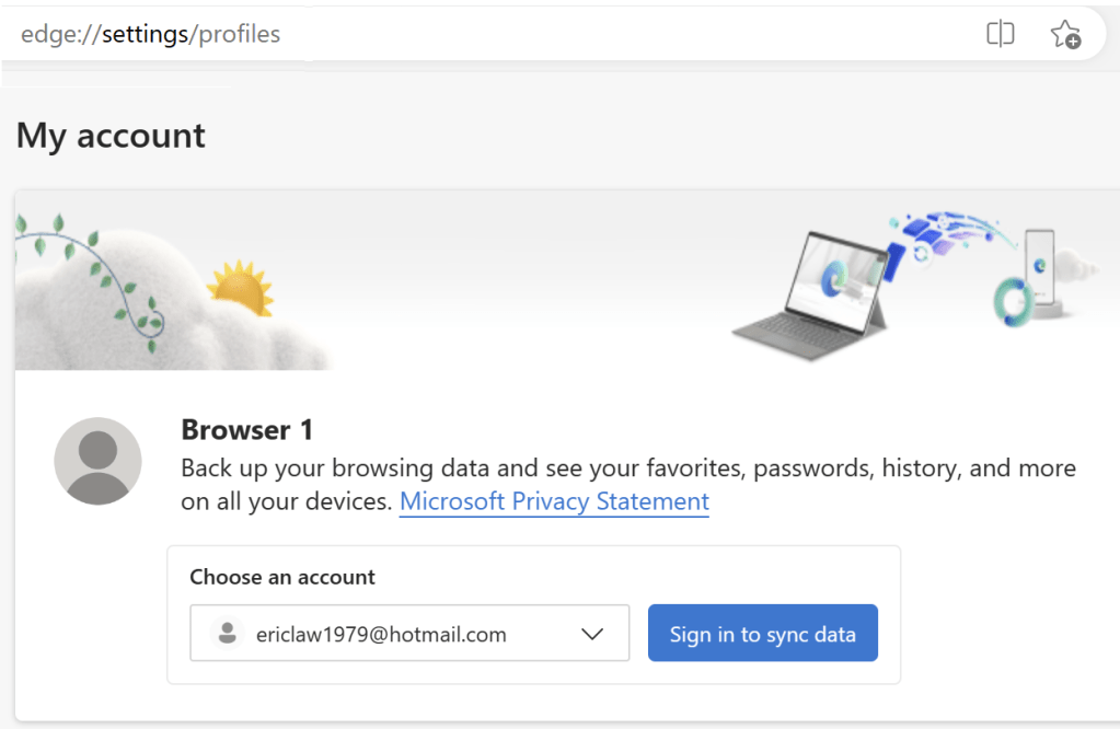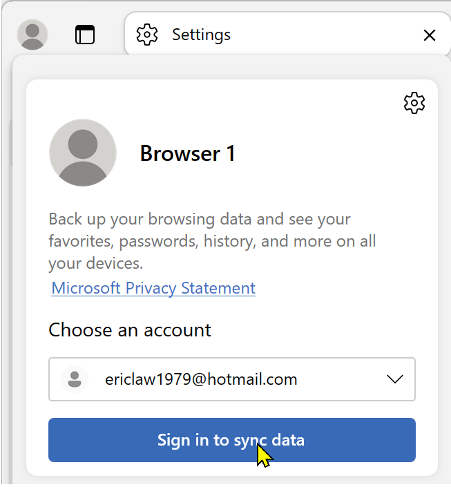 SomeOtherRandomPerson@, - Log into the browser and enable sync with the same Hotmail MSA account