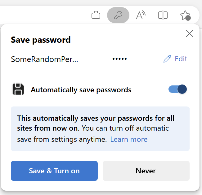 … the next person to use that browser profile will have access to your stored credentials. Even worse, if they decide to log into the profile, now your credentials are roamed from that Kiosk PC into their account, enabling them to log in as you from wherever they go. 😬