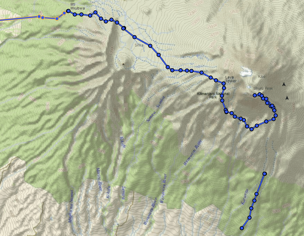 At its peak before COVID, there were 65000 summit attempts per year. This year, in any given week, many hundreds of trekkers hike the mountain, with many more support staff. We learn that our support staff will be enormous– over 50 crew will join us ten. I was surprised to learn that many of our team had opted for the personal porter. (Technically, a personal porter is designated to carry your backpack, although most of our team still carried their own most of the time. After considering which aspects of the trip were challenging, I no longer felt like hiring a personal porter was “cheating”.)