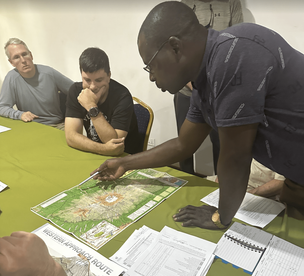 Together, we eagerly pore over a map of the mountain trails as our route is explained.