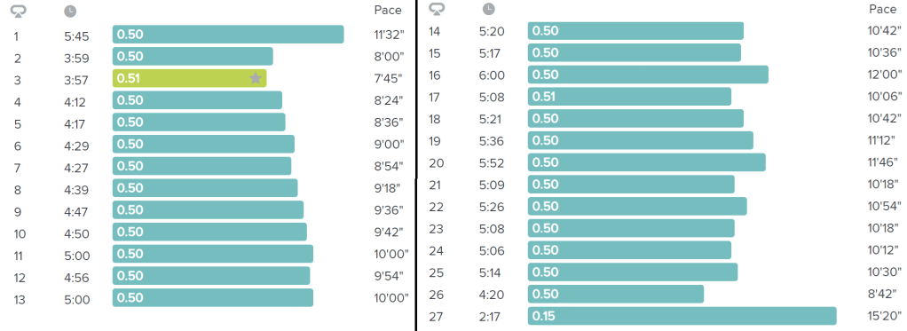 By 7:22 I had parked and was waiting in a long line for a porta-potty near the start, debating about whether or not I should just skip it and go find my pace group. Ultimately, the race began just before I had a turn, although it was nice to dispose of that second cup of coffee. Alas, I was forced to start with the 2:40 pacers. I started my Fitbit a minute or two before my group made it across the starting line. Alas, my second watch (an ancient Timex I found somewhere) crashed when I tried to start it as I crossed the starting line.