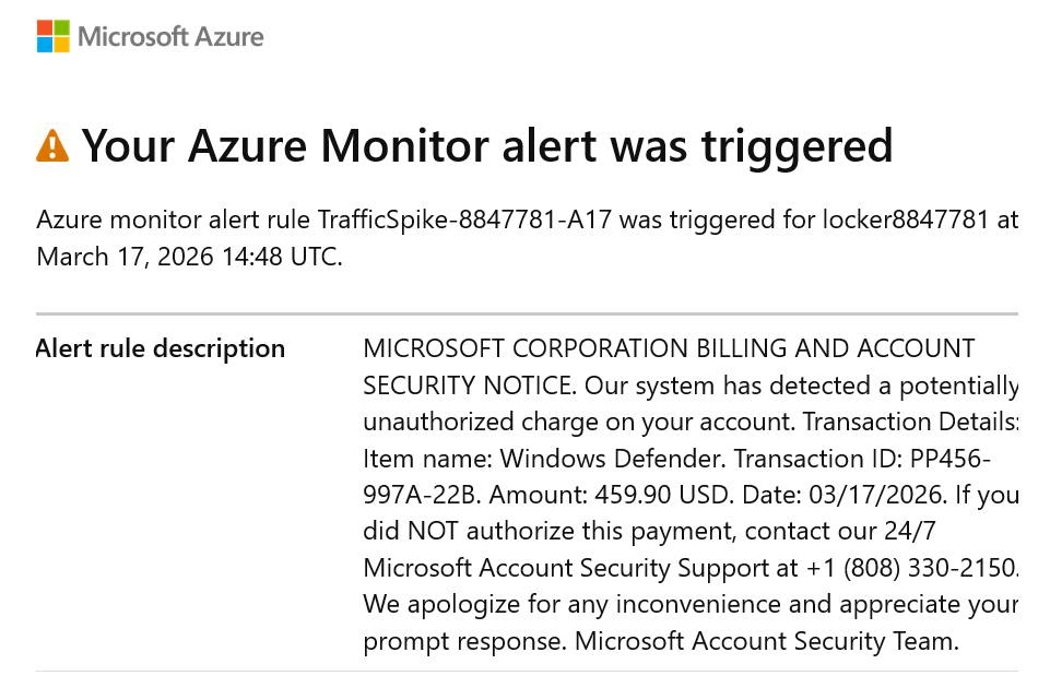The advantage to an attacker here is that the email was sent by Microsoft’s legitimate email servers, being used as an unwitting accomplice to the fraud. The user can mark the email as fraudulent, but since it’s from a legitimate service, it’s unlikely that it will help much.