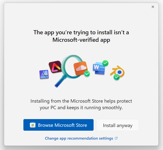 Modern versions of Windows offer a setting named “Choose where to get apps” which can reduce attack surface by limiting the locations from which applications can be installed. Internally, we’ve called this feature “Smart Install”.