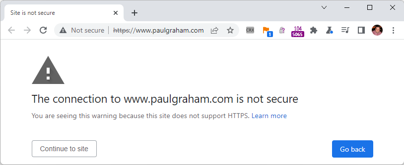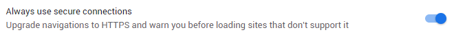 When this option is set, attempting to navigate to a site that does not support HTTP results in a warning interstitial: