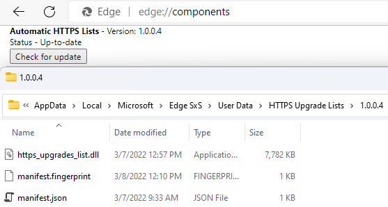 The hostname is included on a hardcoded exemption list containing just a handful of HTTP-only hostnames that are used by features or users to authenticate to Captive Portal interceptors. kAutomaticHttpsNeverUpgradeList = {"http://msftconnecttest.com", "http://edge.microsoft.com", "http://neverssl.com", "edge-http.microsoft.com“};