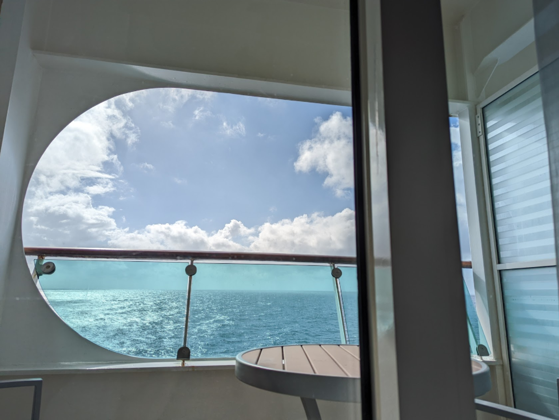 I wavered a bit about whether to splurge on a balcony, a luxury I’d never enjoyed before, and ultimately decided “What the heck, it’s Christmas!”