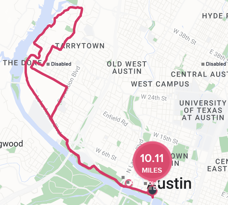 Shortly after mile 6, I discarded my gloves which had served me well. By this point I was taking short walking breaks and had concluded that I was unlikely to set any PRs.