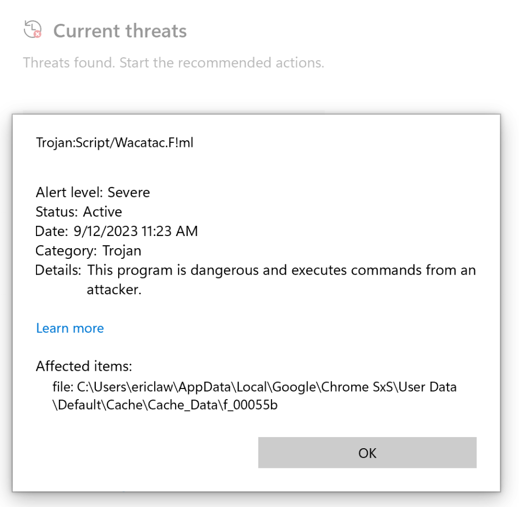 Making matters even scarier, the attack site may deliver JavaScript which, while (harmlessly) loaded into the browser cache, causes the system’s real security software to pop up a toast indicating that an attack is underway.