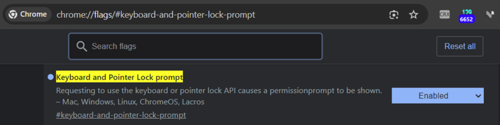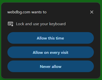 …and restart your browser, future attempts to invoke the keyboard lock will explicitly prompt before locking the keyboard: