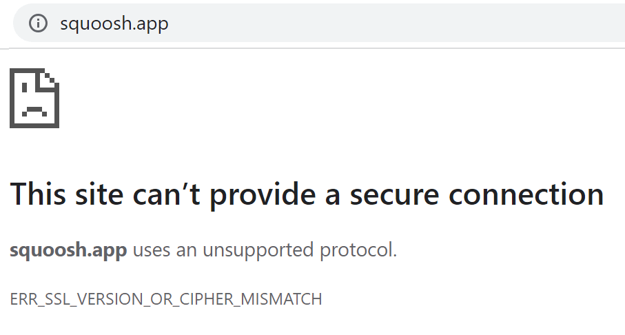 Because the Squoosh app isn’t loading from the network, network-level blocking by a feature like Network Protection or a block on your corporate gateway or proxy server will not impact the loading of the app so long as its ServiceWorker is installed. Only if the user manually clears the ServiceWorker (e.g. hit Ctrl+Shift+Delete, set the appropriate timeframe, and choose Cookies and other site data):