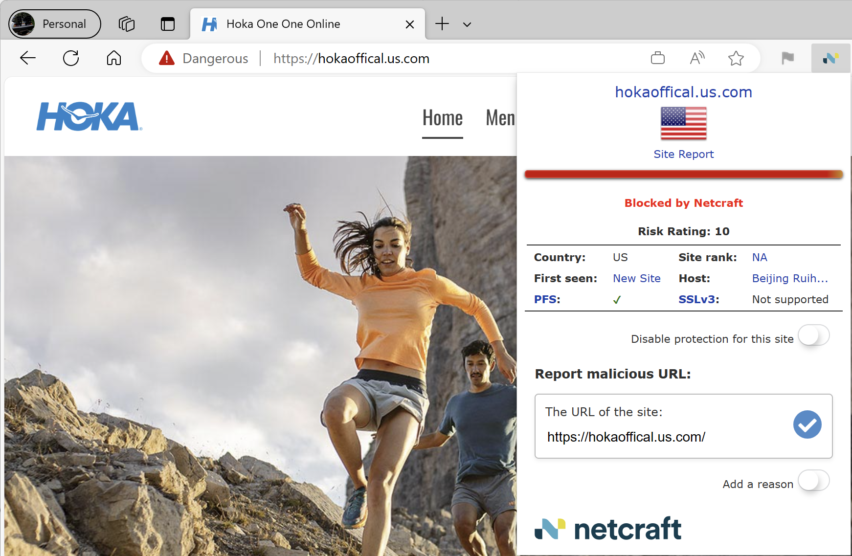 Still, that’s not to say that geolocation isn’t without value as a signal. For example, last month, my parents encountered a scam site purporting to sell shoes. The scam site was a visually-perfect copy of a real site, but hosted by the scammers who collected credit card numbers and ran up hundreds of dollars in bogus charges. While the site’s domain name ended in us.com, suggesting an American company, the site’s IP address reveals that it was hosted out of Beijing. When I went back a few days later, the IP had changed to one somewhere in the Middle East.