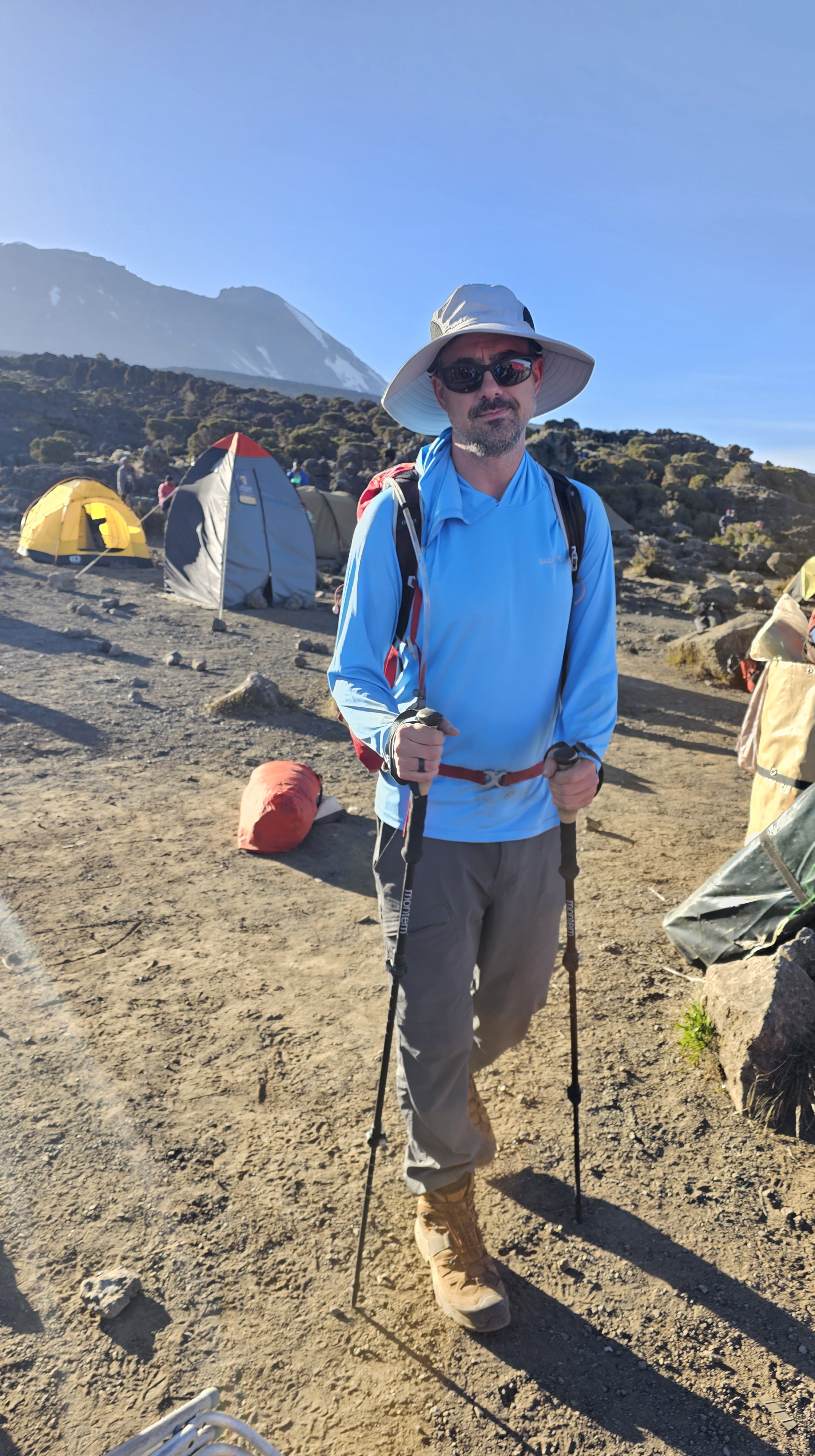 We arrived at the camp, signed the logbook, and took turns posing for photos at the Shira 1 sign with Kili in the background. Finally it felt like we were really doing this thing!