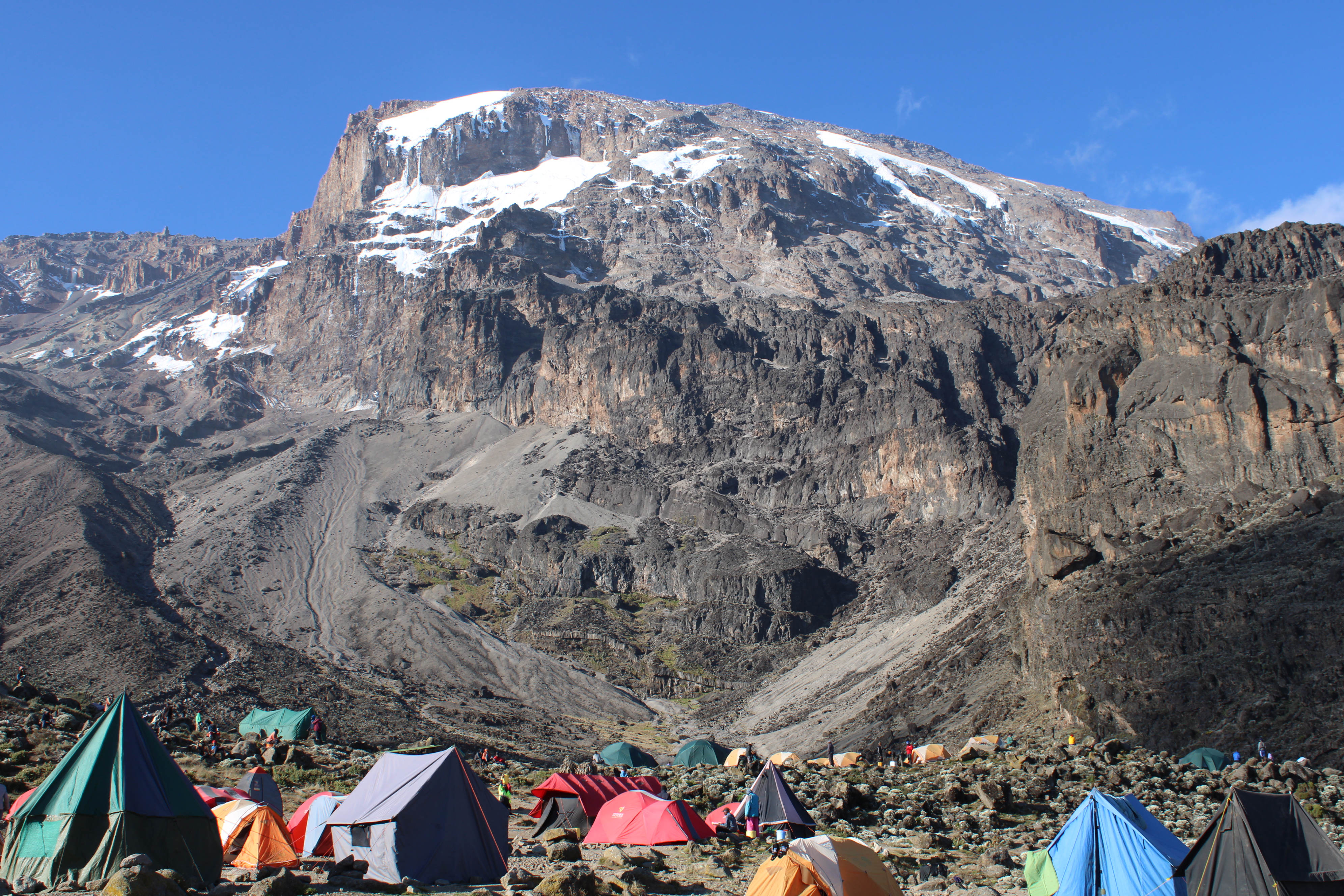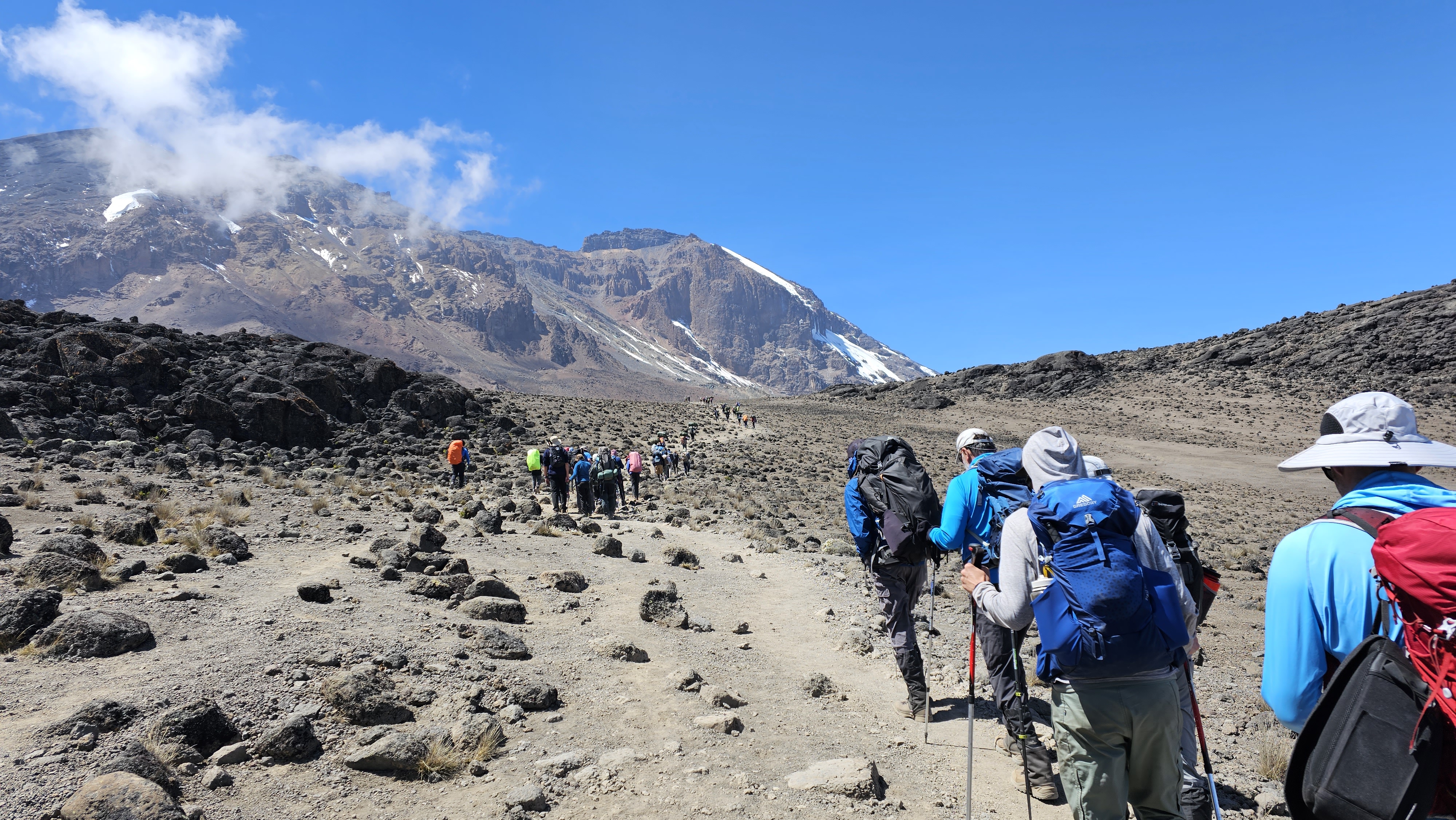 When we look back at how little distance we’ve covered, it seems almost like a joke. In this photo, our camp is 6 hours’ hike behind us, and Barafu Camp an hour behind that.