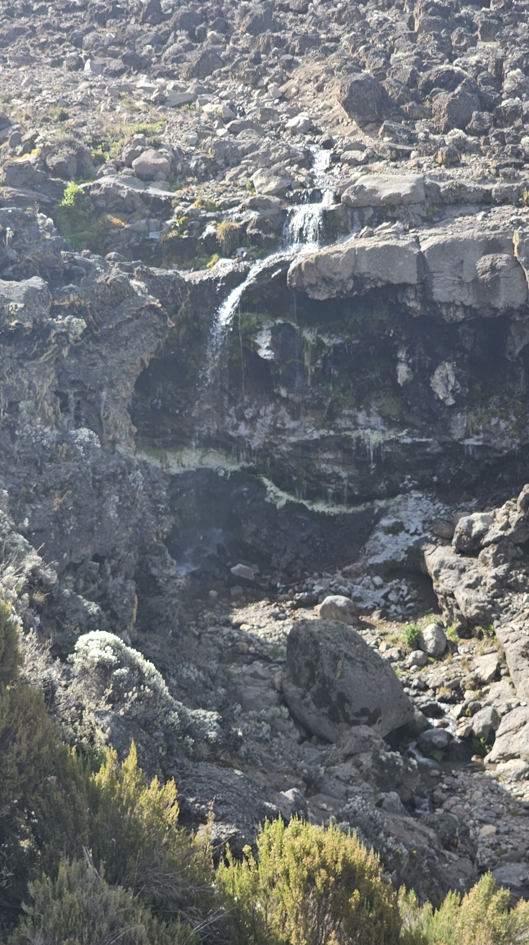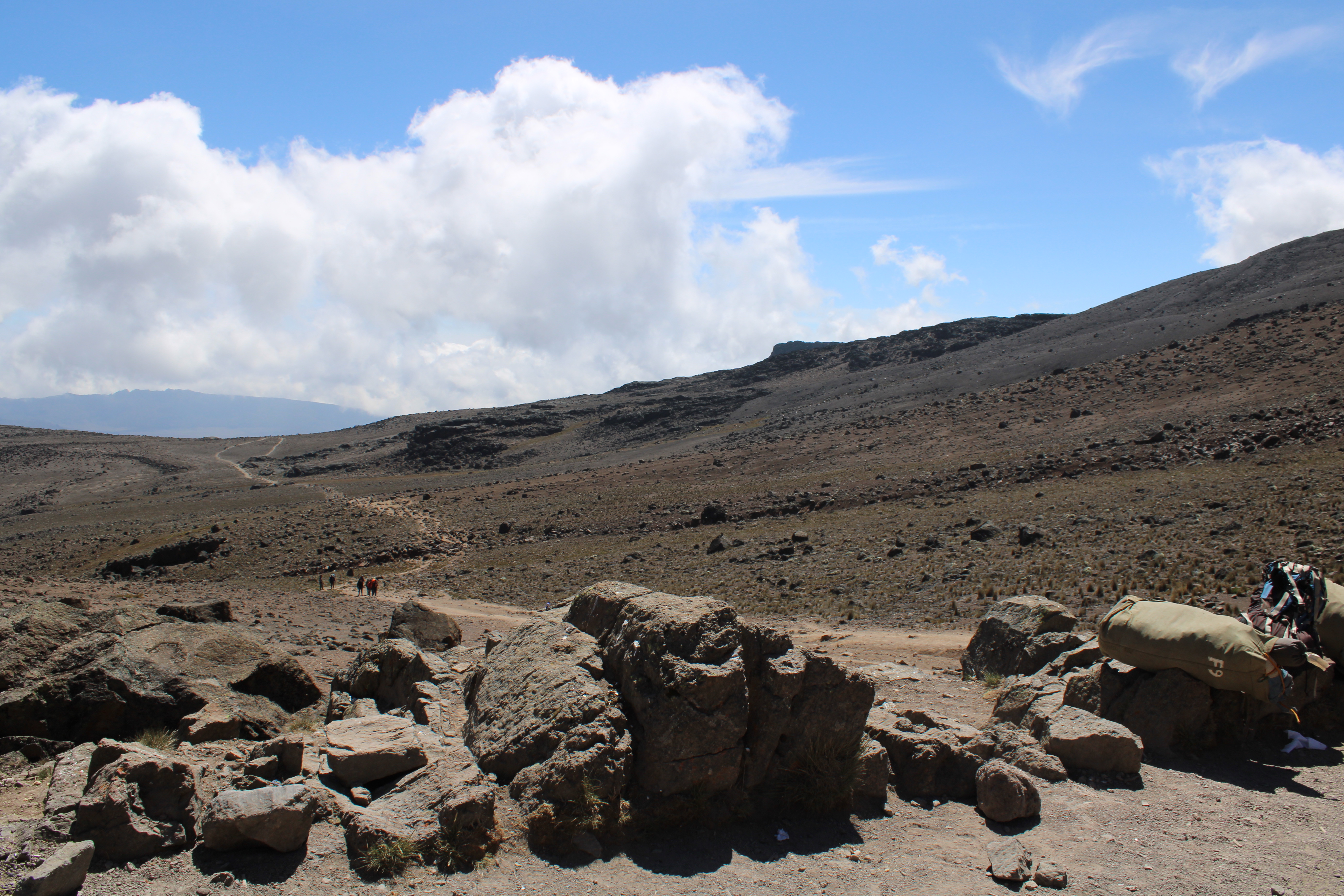 It seems impossibly far away, but we’re actually not far from the night’s camp, Shira 1, which is barely visible in the plateau.