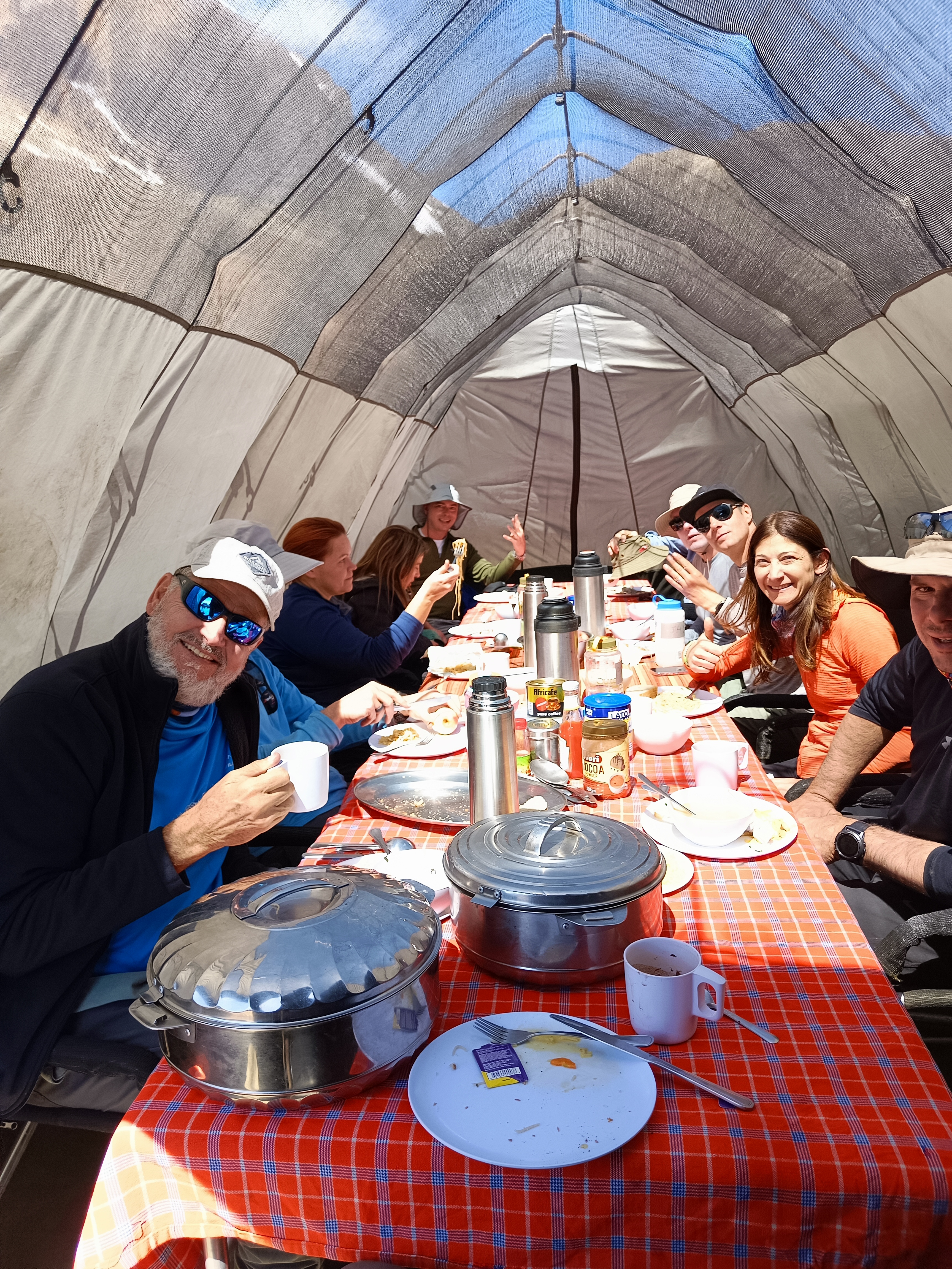 At breakfast, my oxygen saturation is back up to 88%. While billed on our itinerary as a “celebratory breakfast”, it was essentially the same as all of the others, except now we had no worries about summit day.