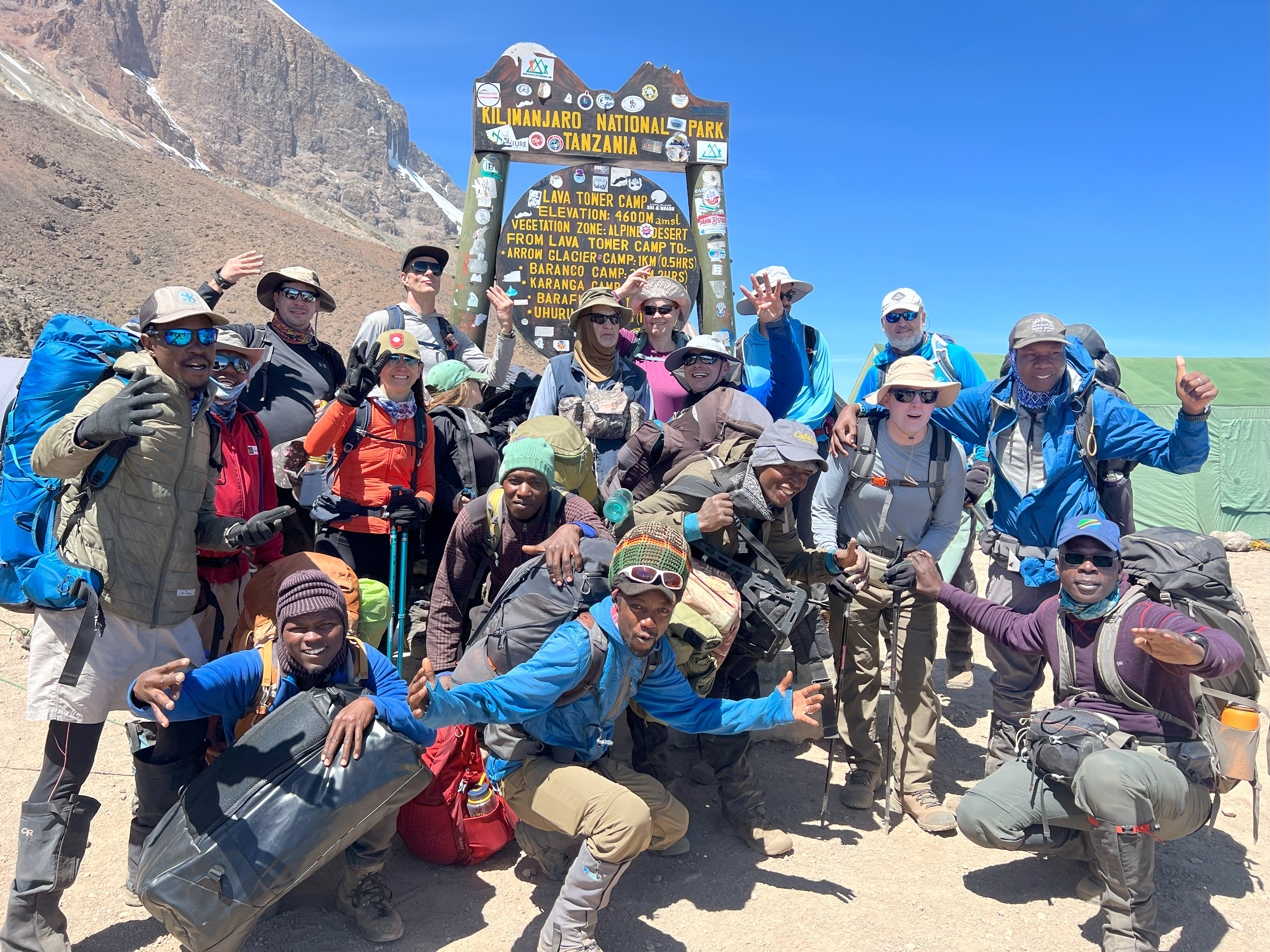 Shortly, we came to a small rock clearing with a clearer view and all mugged for cameras and selfies with Kili in the background.